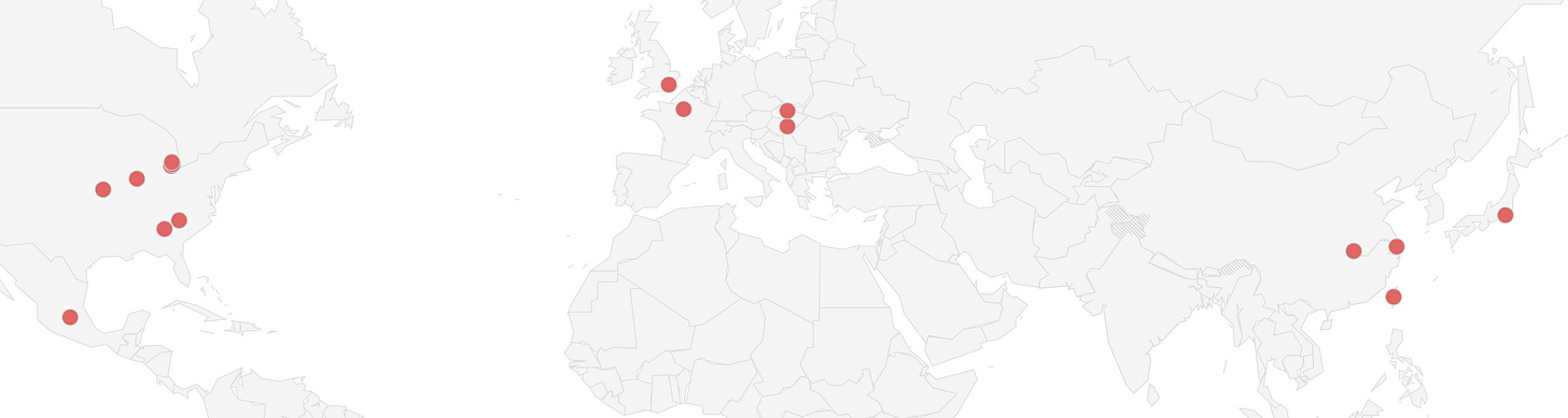 Sites in Texas, Arkansas, Tennessee, the Carolinas, Georgia, and Virginia look most exposed because they depend on road corridors in the storm path.